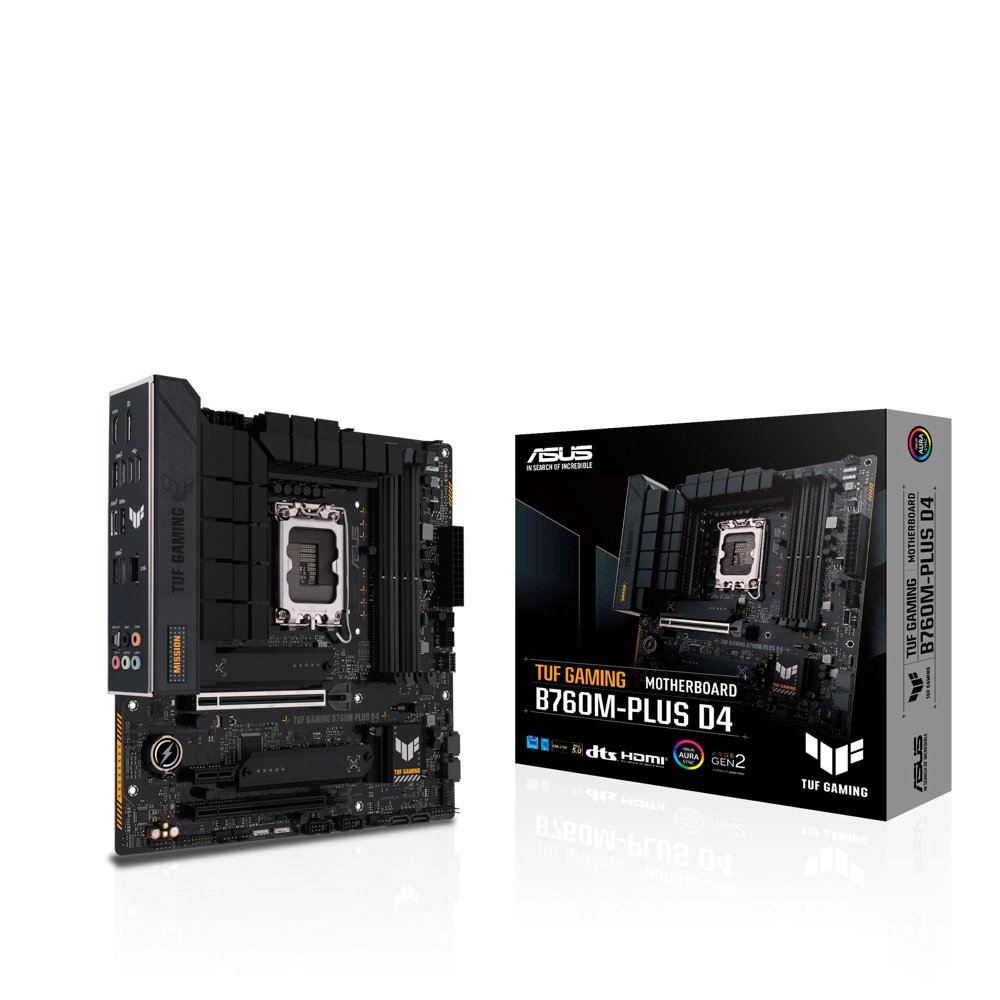 ASUS TUF GAMING B760M-PLUS D4. Processorfabrikant: Intel, Processor socket: LGA 1700, Compatibele processors: Intel® Celeron®, Intel® Core™ i3, Intel® Core™ i5, Intel® Core™ i7, Intel® Core™ i9,…. Ondersteunde geheugen types: DDR4-SDRAM, Maximum intern geheugen: 128 GB, Geheugen slots type: DIMM. Ondersteunde opslagstationinterfaces: M.2, SATA III, Ondersteunde types opslag-drives: HDD & SSD, Soorten RAID: 0, 1, 5, 10. Ethernet interface type: 2.5 Gigabit Ethernet. Component voor: PC, Moederbord form factor: micro ATX, Moederbord chipset familie: Intel